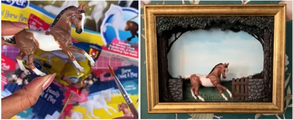The plastic horse is then glued into the frame, standing proudly as the centrepiece.