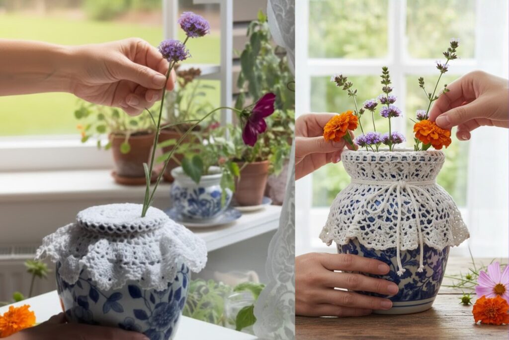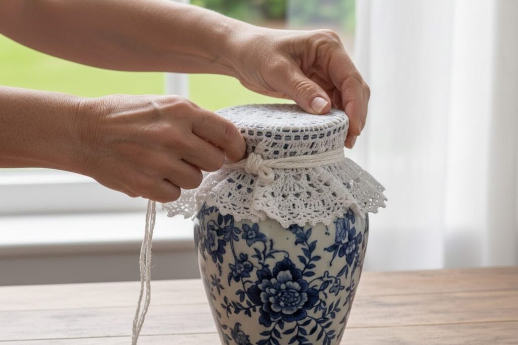 - A Crochet Doily: A medium-sized lace or crochet doily that is larger than the vase opening.
