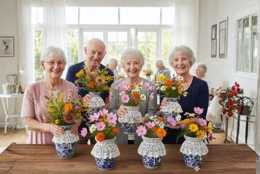 This simple method instantly solves the challenge of arranging flowers by making the doily’s holes an easy-to-use grid. This removes the frustration of stems flopping over and makes the activity highly accessible and rewarding, allowing seniors to express their creativity with ease.