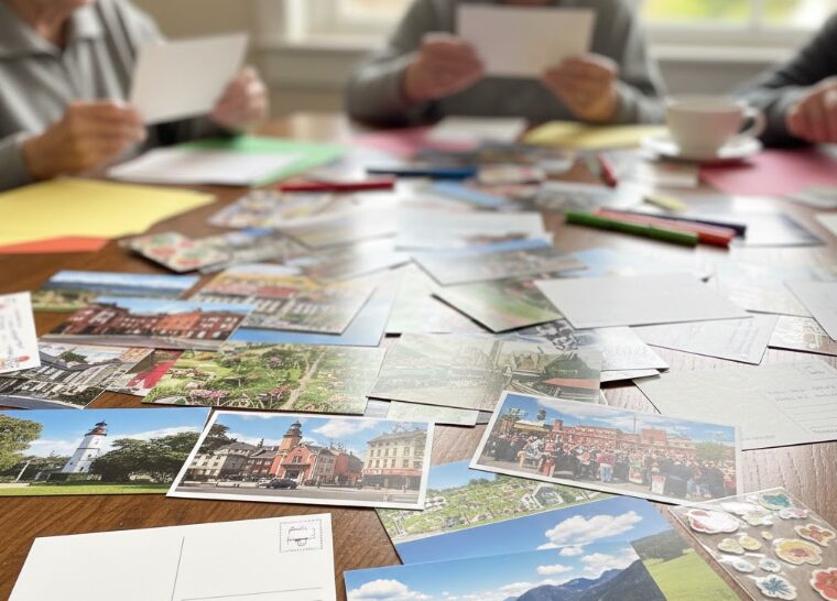 Postcards are a fantastic option: they’re colourful, interesting, and often feature images from your local area. They also leave enough space on the back for residents to write a short, friendly message. If your group sends enough postcards, the receiving residents may each get one to read and keep — a lovely memento.