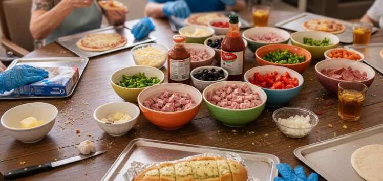 If your facility has a commercial oven, pizzas and garlic bread will bake quickly. Otherwise, cook them in batches—tasting a variety of toppings can be part of the fun!