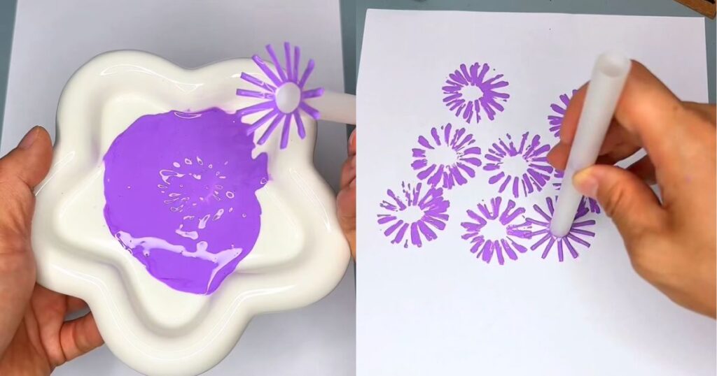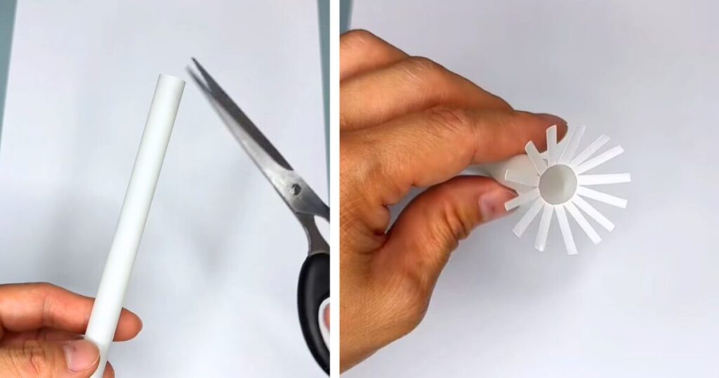 Give each resident a plastic straw. Cut small slits around one end and gently spread the edges — this will become the “petal” shape for printing.