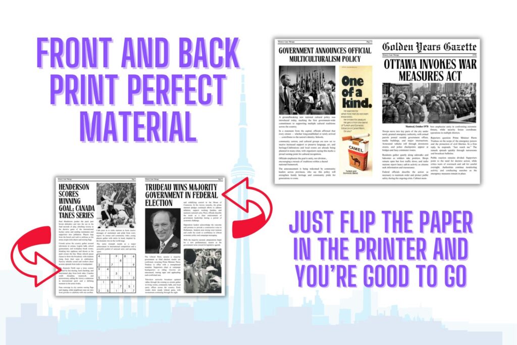 The Canada 1970–1975 Reminiscing Newspaper is best printed in A3 format for easy reading.