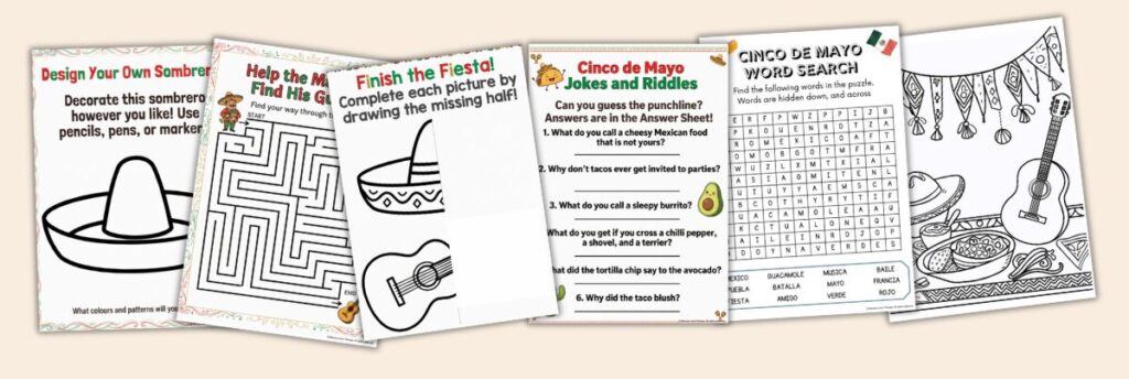 To give you a glimpse of what’s inside, here is a sneak peek at some of the activities included in our Cinco de Mayo booklet!