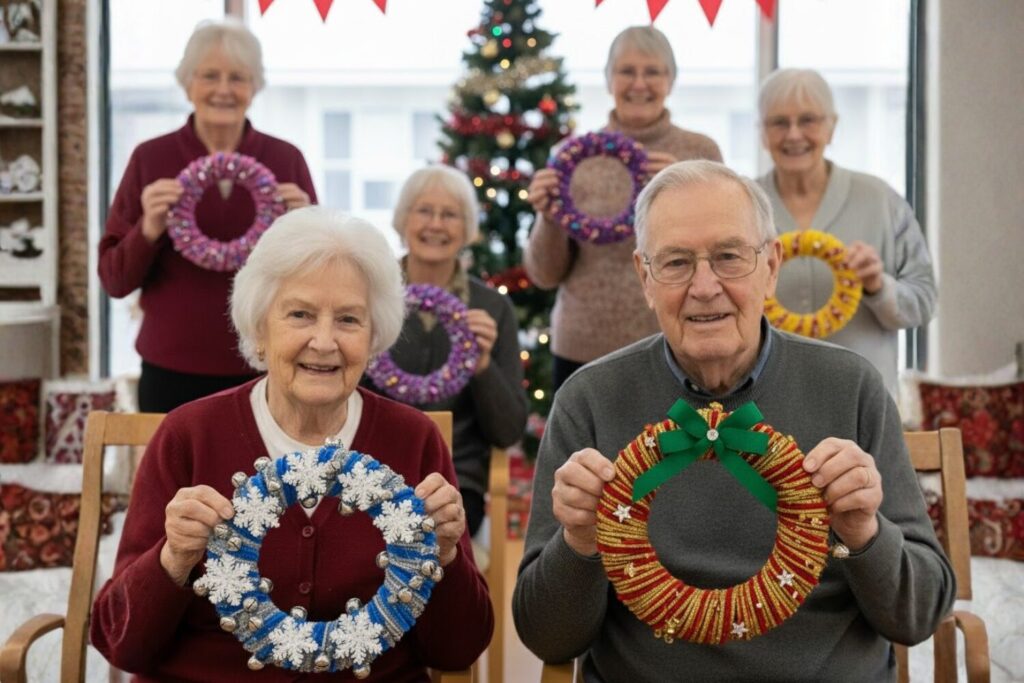 Bring a touch of festive cheer to your activity program with this simple and colourful Christmas wreath craft! It’s a wonderful group activity for seniors that uses pipe cleaners, ribbons, and a paper plate to create a bright holiday decoration — perfect for hanging on doors, walls, or Christmas trees. This craft is easy to adapt for all ability levels and requires no hot glue or complex tools, making it safe and fun for residents in aged care, retirement villages, or day centers.